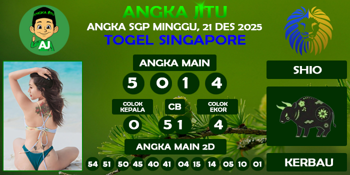 Prediksi Angka Jitu Sgp Minggu 21 Desember 2025 – Angka Jitu menyediakan bocoran hongkong atau prediksi togel Sgp paling jitu dan akurat malam ini, angka togel sgp di jamin pasti tembus karena dihasilkan dari hasil rumusan akurat oleh mbah toto togel sgp.