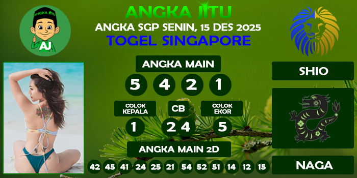 Prediksi Angka Jitu Sgp Senin 15 Desember 2025 – Angka Jitu menyediakan bocoran hongkong atau prediksi togel Sgp paling jitu dan akurat malam ini, angka togel sgp di jamin pasti tembus karena dihasilkan dari hasil rumusan akurat oleh mbah toto togel sgp.